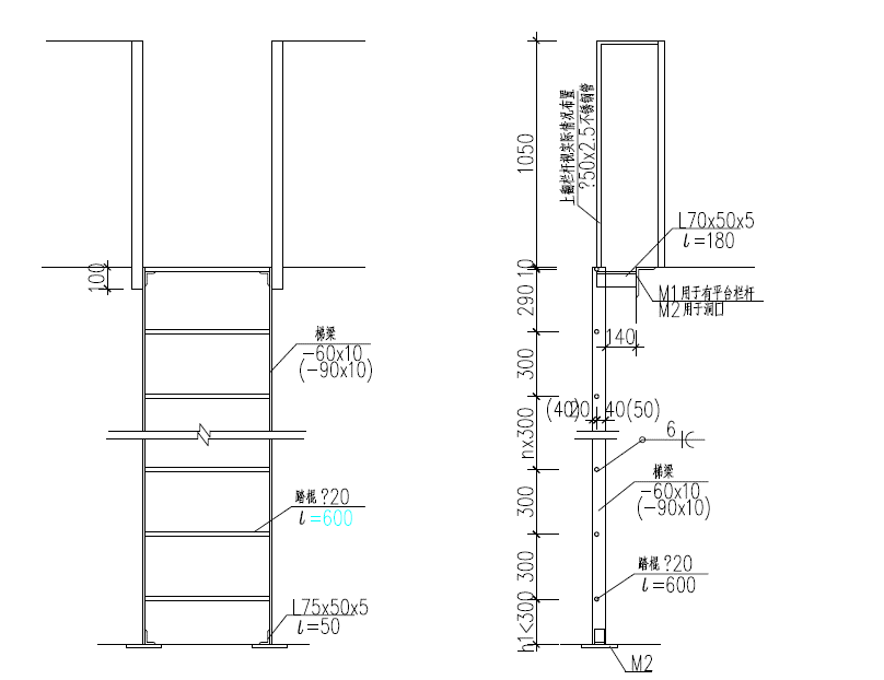 踏棍宜采用不小于Φ20㎜的圓鋼,間距宜為300㎜等距離分布。
